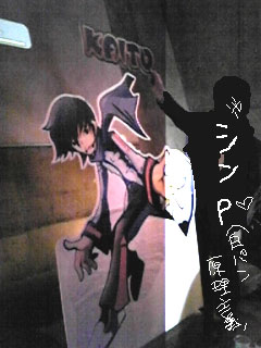 これも関●弁Pと伝●P作の等身大KAITOwwwすごすぎる。ちゃんと反転して全身(靴まで)入ってる!愛ありすぎて感動しました。持ってるのはシンP。シンP会ったら「ちょ・・・おま・・・また来たのかw」的に見られたw基本MCは主催のぱんつPでしたが2人の掛け合いとデュエットが素敵過ぎた。